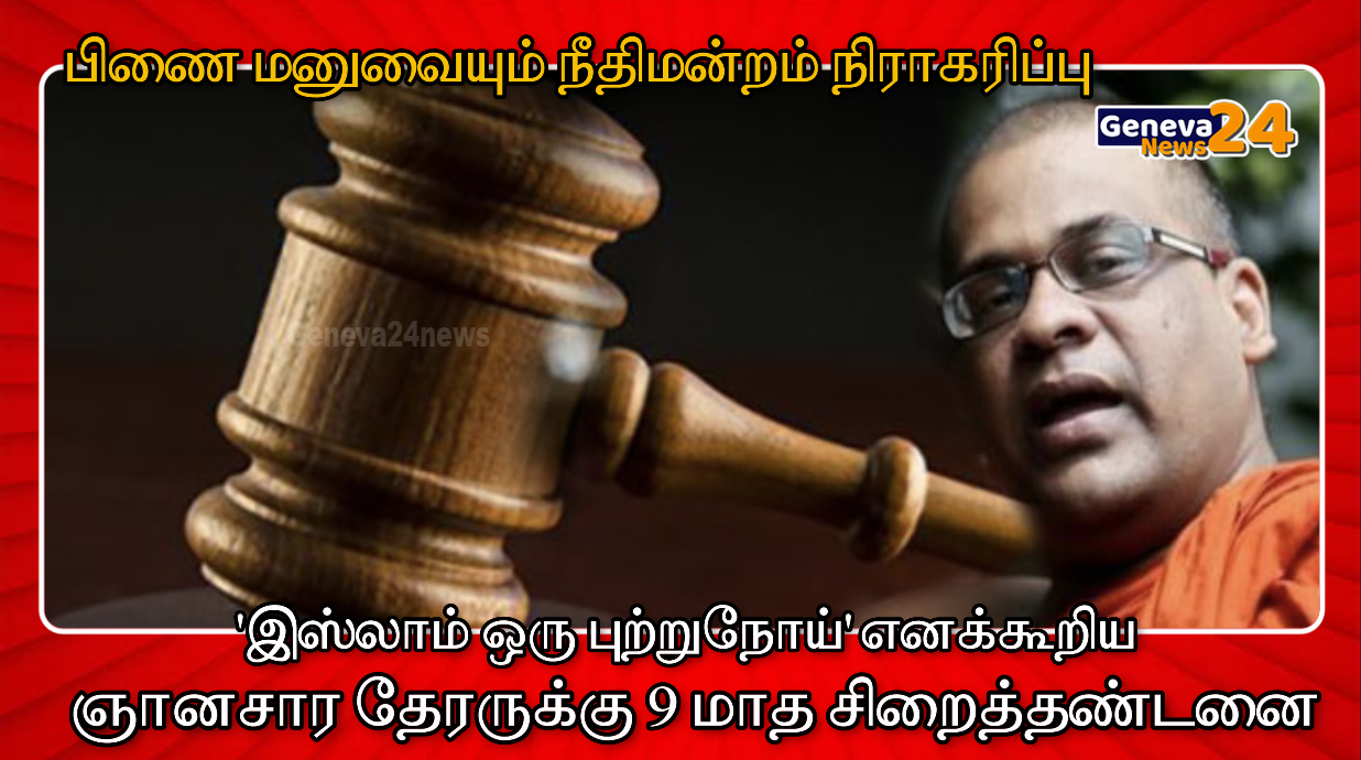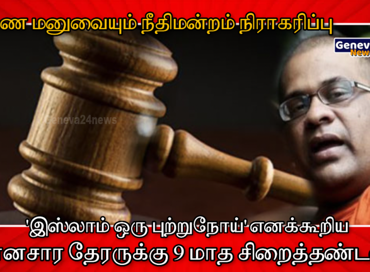 ‘இஸ்லாம் ஒரு புற்றுநோய்’ எனக்கூறிய ஞானசார தேரருக்கு 9 மாத சிறைத்தண்டனை – பிணை மனுவையும் நீதிமன்றம் நிராகரிப்பு இஸ்லாத்தை அவமதித்த குற்றச்சாட்டின்...