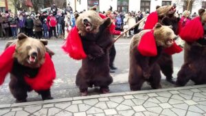 பல நூற்றாண்டுகளுக்கு முன்பு, இப்போது வடகிழக்கு மக்கள் கரடி தோல்களை அணிந்துகொண்டு தீய ஆவிகளை விரட்ட நடனமாடினர். அந்த வழக்கம் இன்று டிசம்பரில் சுற்றுலாப் பயணிகளின் கூட்டத்தை ஈர்க்கும் நடன கரடிகள் திருவிழா என்று அழைக்கப்படுகிறது.